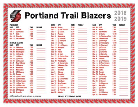 Photo Credit by: templatetrove.com schedule blazers printable trail portland times pacific templatetrove eastern